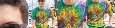 Two-color tie-dying joins an allover burnout pattern for a one-of-a-kind tee.