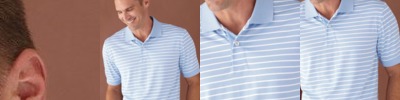 Horizontal striping lends flair to this moisture-wicking poly sport shirt.