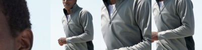 A contrast-color side panel adds slimming style to a moisture-wicking pullover.