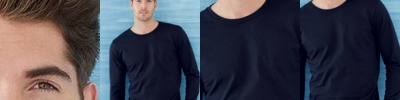 - Double-needle stitched rib binding on neck, sleeves, leg openings and shoulders