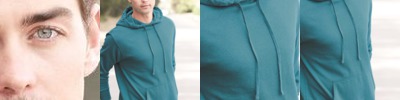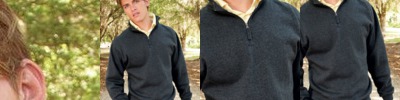 - Raw edge seams around hood opening, pocket seams and neckline